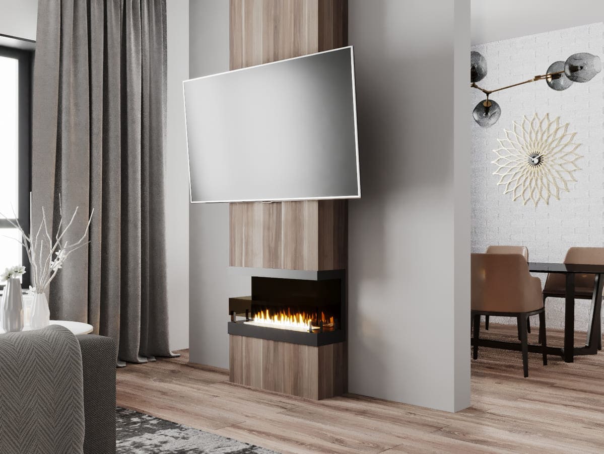 Декоративное стекло — крепится на всю заднюю стенку очага. За счет своего зеркального отражения, пламя визуально становится в 2 раза больше и кажется, что камин горит еще ярче.