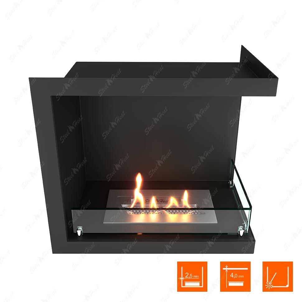 Встраиваемый Биокамин угловой SteelHeat Leader 500 правый предназначен для встраивания в глухие ниши из гипсокартона, кирпича, пеноблоков, бетона.