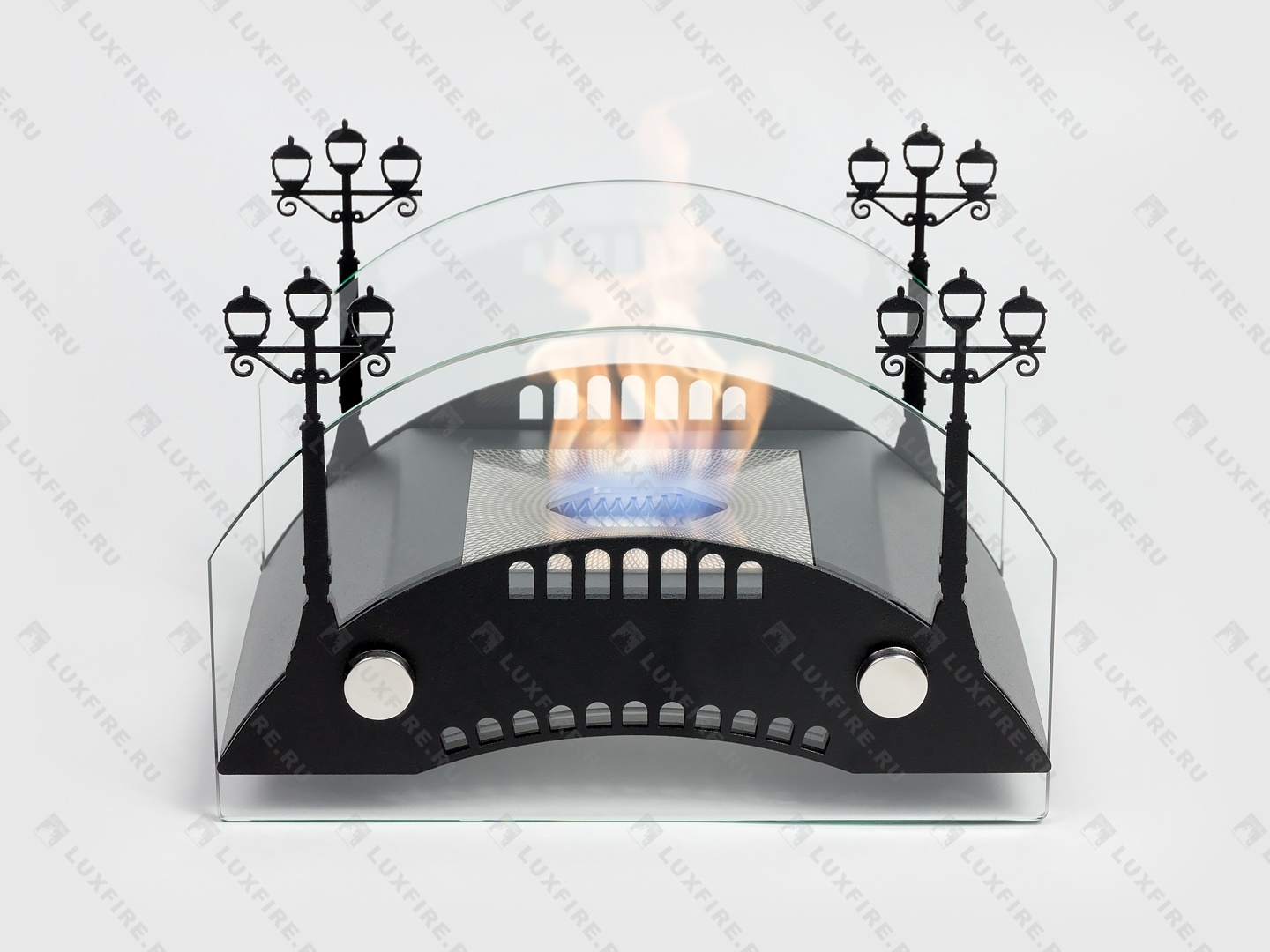 Представляет собой биокамин, который создан по мотивам мостов дореволюционной России середины ХIX-начала XX века и состоит из металлического корпуса с топливным блоком Lux Fire 100-1 огражденным с двух сторон скругленными защитными стеклами на дистанционных держателях и декоративными металлическими накладками в виде «Фонарей»